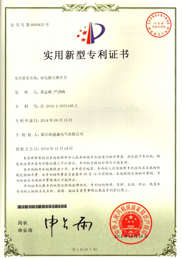 双电源开关专利