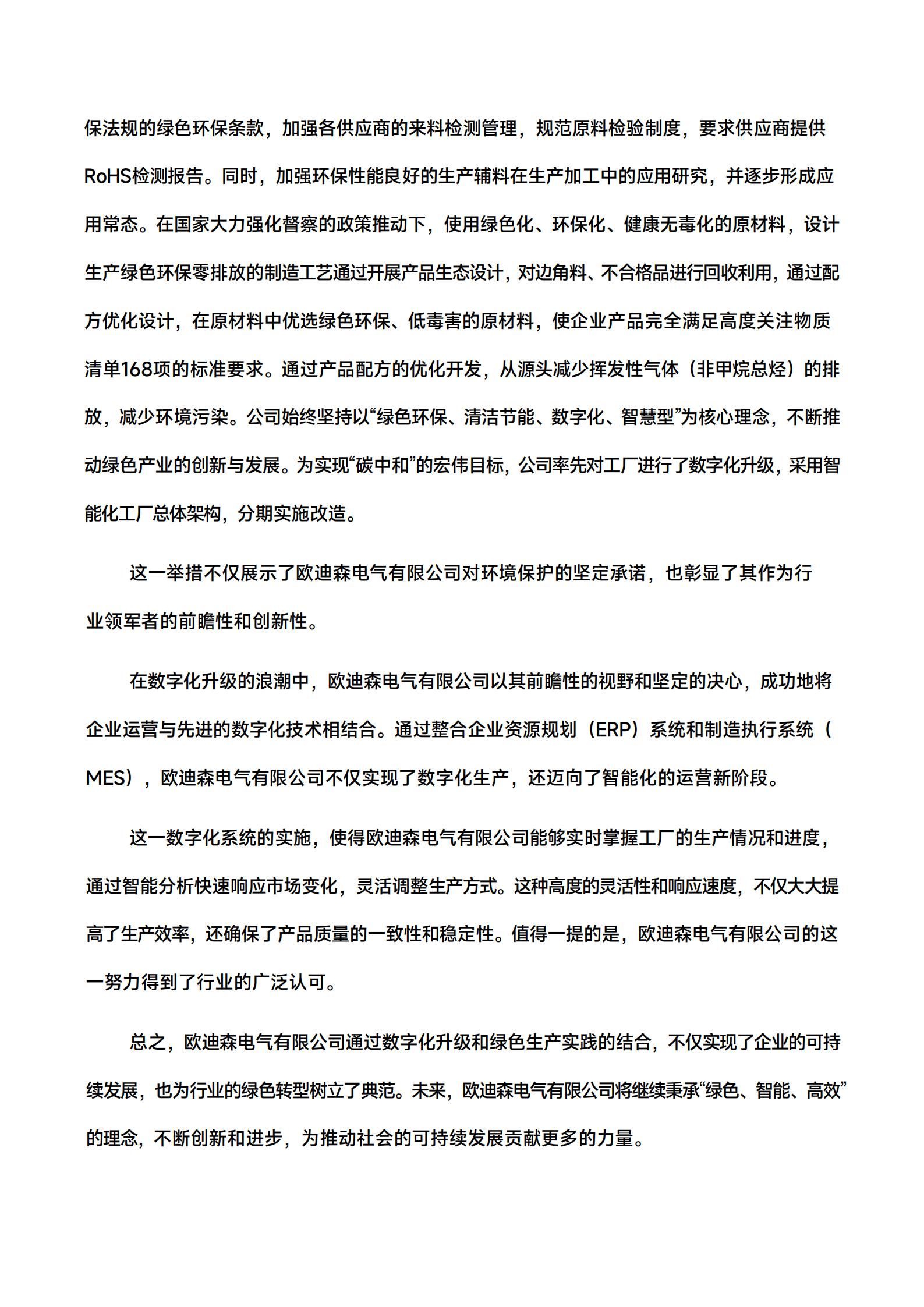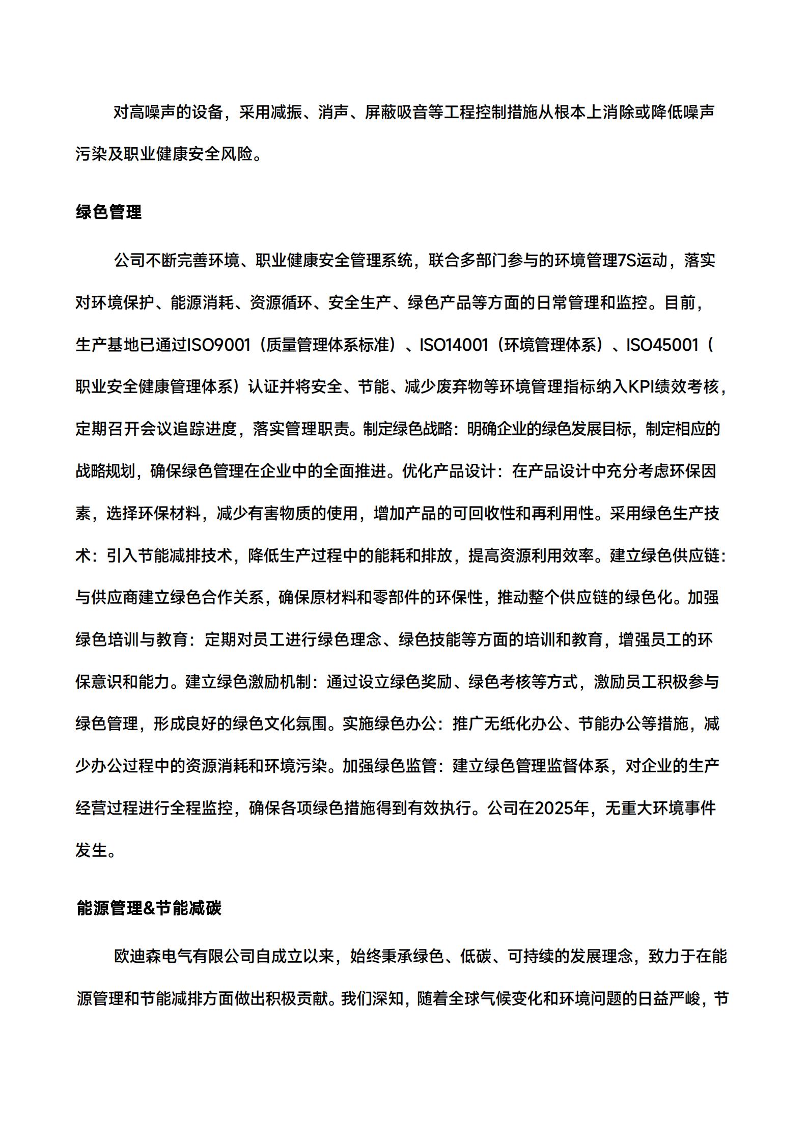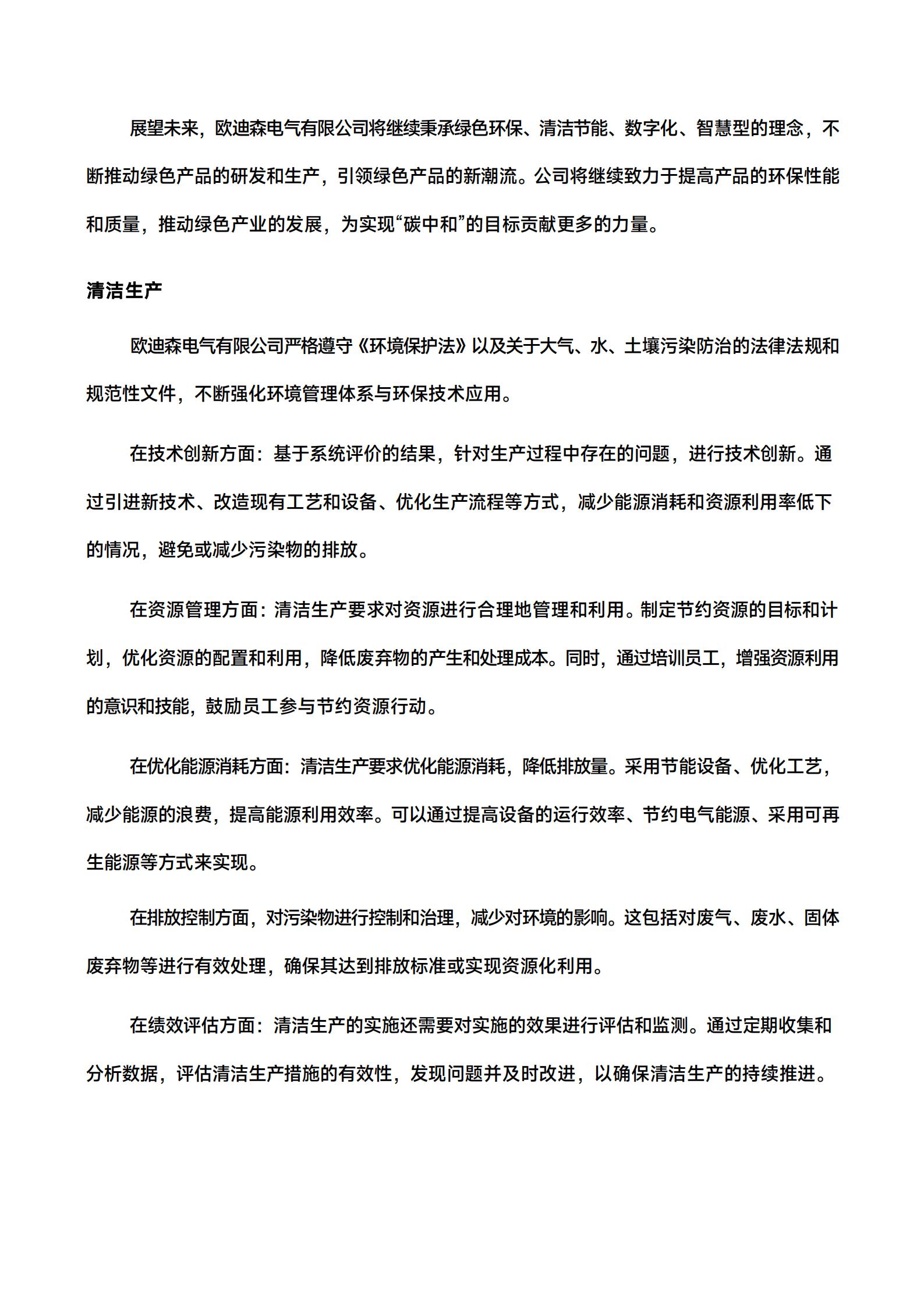 报告覆盖欧迪森电气有限公司实际生产经营场所,与财务报告合并报表范围一致。本报告中披露的数据及信息若无特殊说明,范围均为欧迪森电气有限公司在中国大陆地区业务运营点。