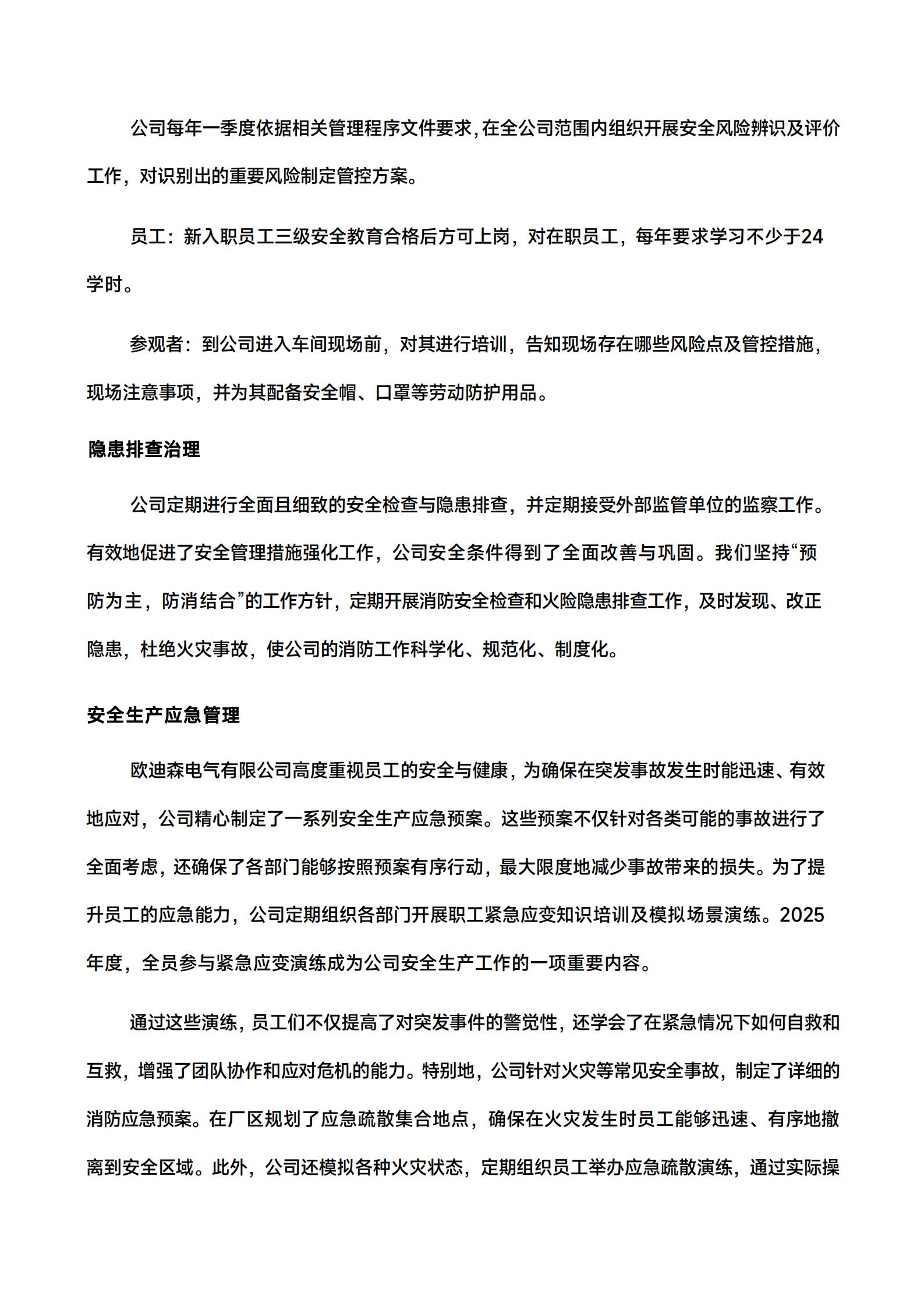 大家好!首先,感谢大家阅读欧迪森电气有限公司的ESG报告。本报告的编制旨在推动公司在环境、社会和公司治理方面的可持续发展,以实现我们的长期目标。经过充分的讨论和交流,我想在这里总结一下我们的主要发现和行动计划。