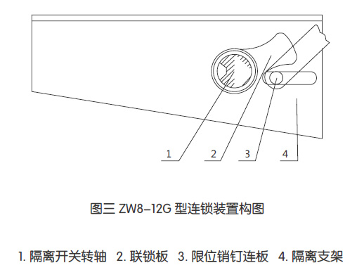 隔离开关主要由底架、绝缘子、触座、触刀、触头、操作手柄等部分组成,采用人力操作。在断路器与隔离开关之间加装机械联锁,具有以下防